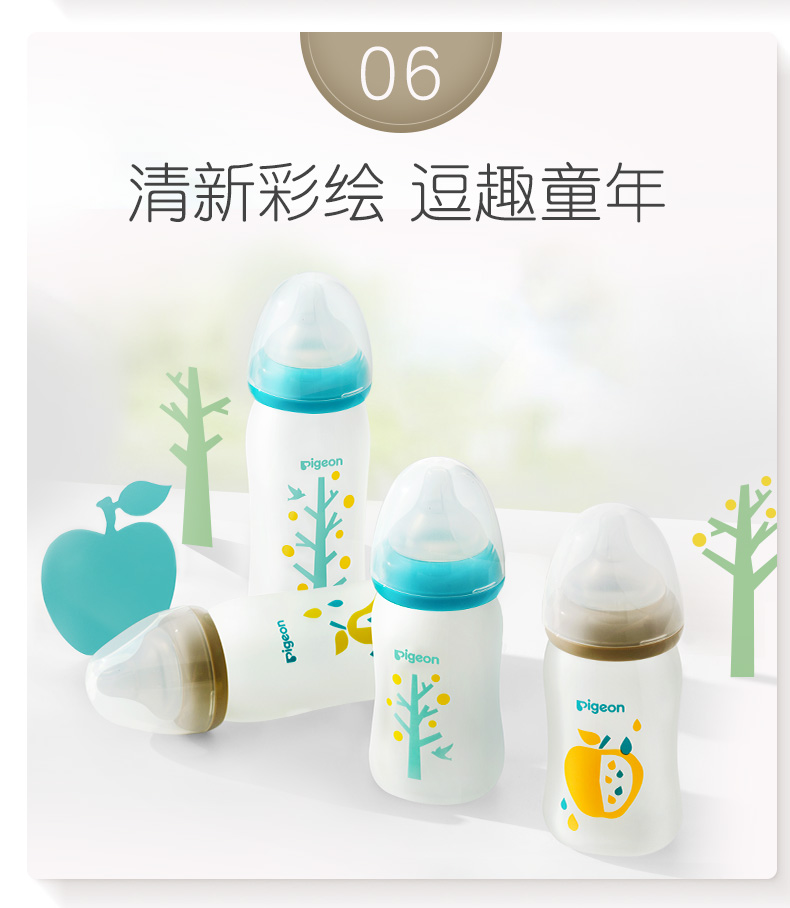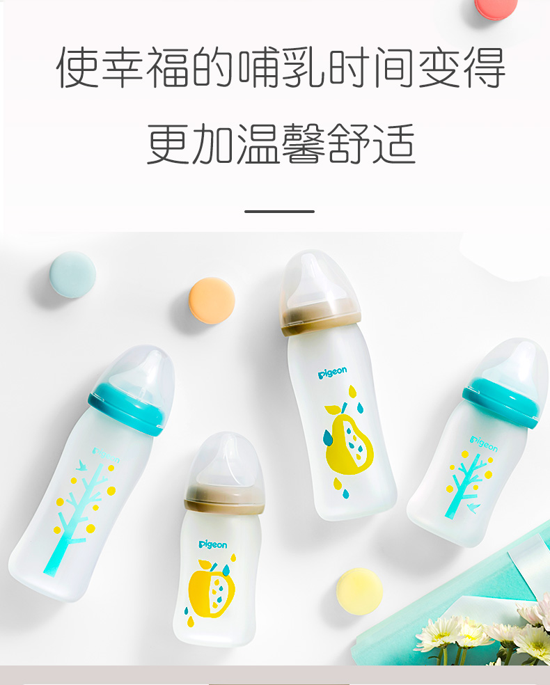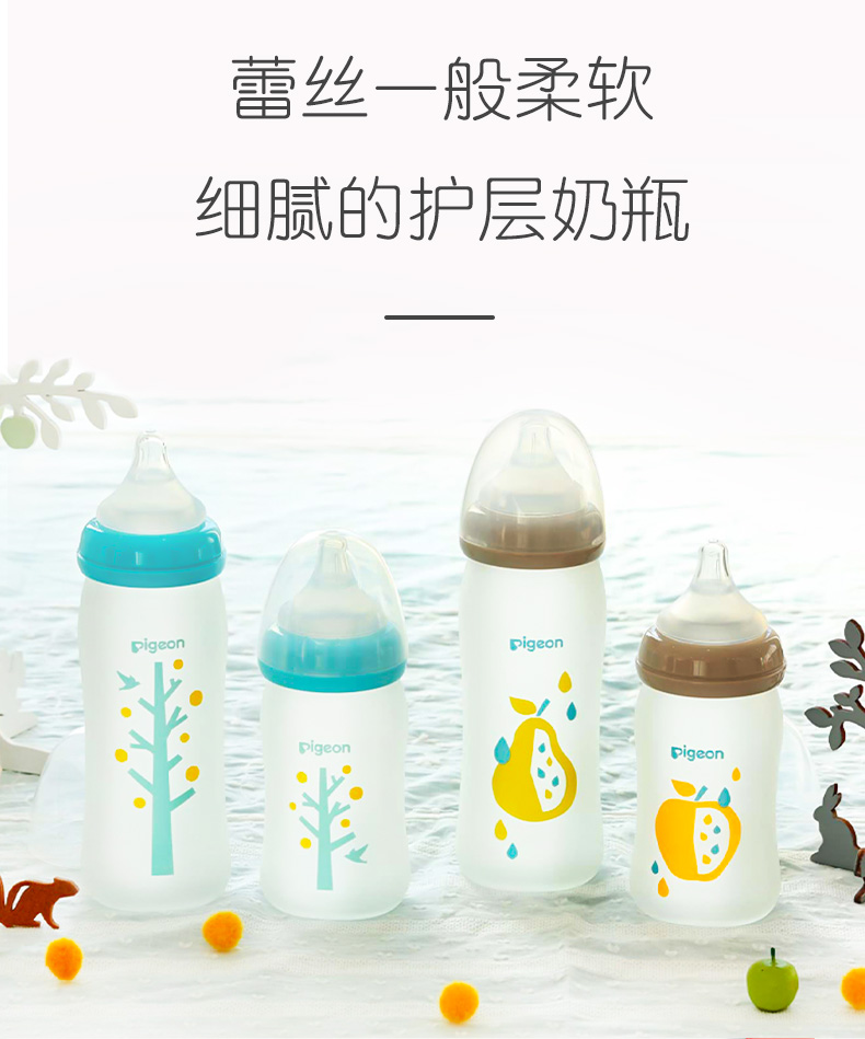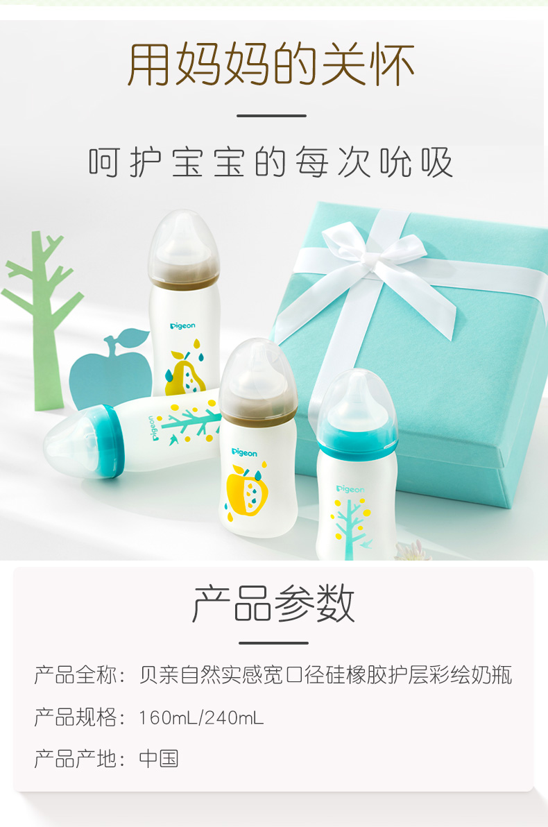 贝亲pigeon 母乳实感硅胶护层彩绘奶瓶