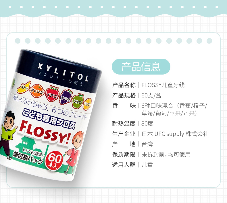 Flossy 儿童牙线 超细水果味 60支独立包装