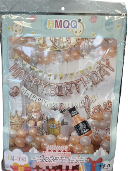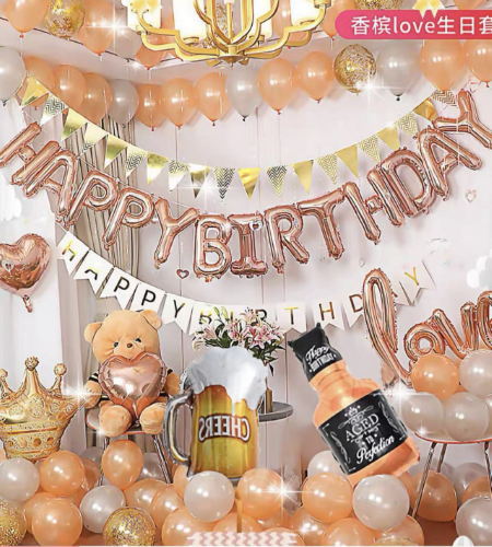 Included:2.2g balloons x25Mini beer mug x1Mini whiskey x118 inch hearts x218 inch conkoined love x1Birthday flag x1Triangle flag x1Love pendant x1Raindrop x1Glue x1