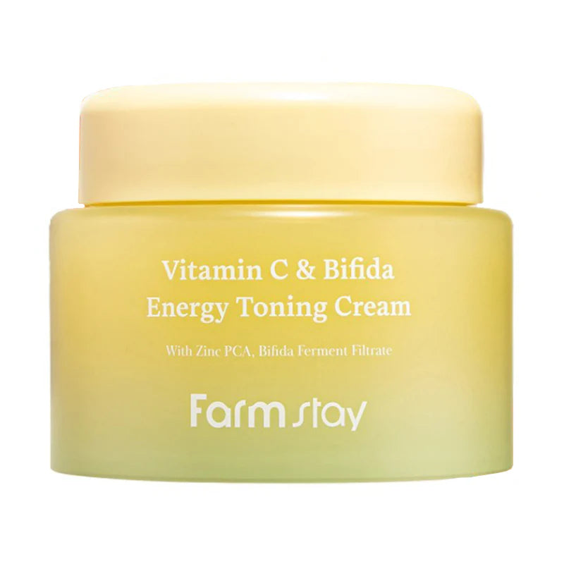 The Farmstay Vitamin C & Bifida Energy Toning Cream 100ml is a revitalizing daily face cream designed to brighten dull skin, improve tone, and boost moisture levels. This cream harnesses a patented brightening complex (ILLUMISCIN®) to target the appearance of dark spots and dullness, helping promote a more luminous complexion. It also contains three types of probiotic-derived ingredients, including bifida ferment filtrate, to help support the skin’s natural elasticity and microbiome balance. Sea buckthorn fruit extract adds soothing properties, helping restore skin comfort and balance after irritation or stress. The lightweight, non-sticky texture absorbs easily, providing lasting hydration and a refreshed appearance suitable for everyday use.