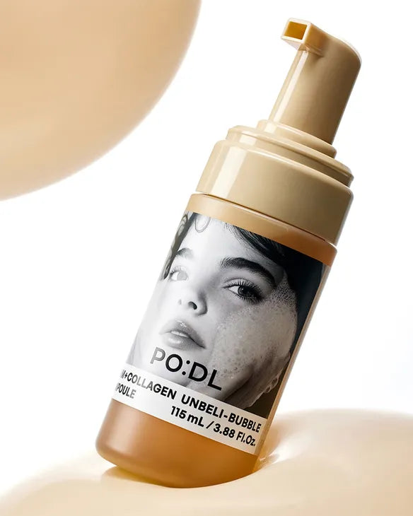 The PO:DL Bam + Collagen Unbeli-Bubble Ampoule is an innovative skincare ampoule designed to provide deep hydration, skin-firming care, and brightening benefits. Featuring a unique nano bubble texture, the formula dispenses as a soft whipped foam that melts instantly into the skin, delivering moisture and nutrients without leaving a greasy or heavy residue.