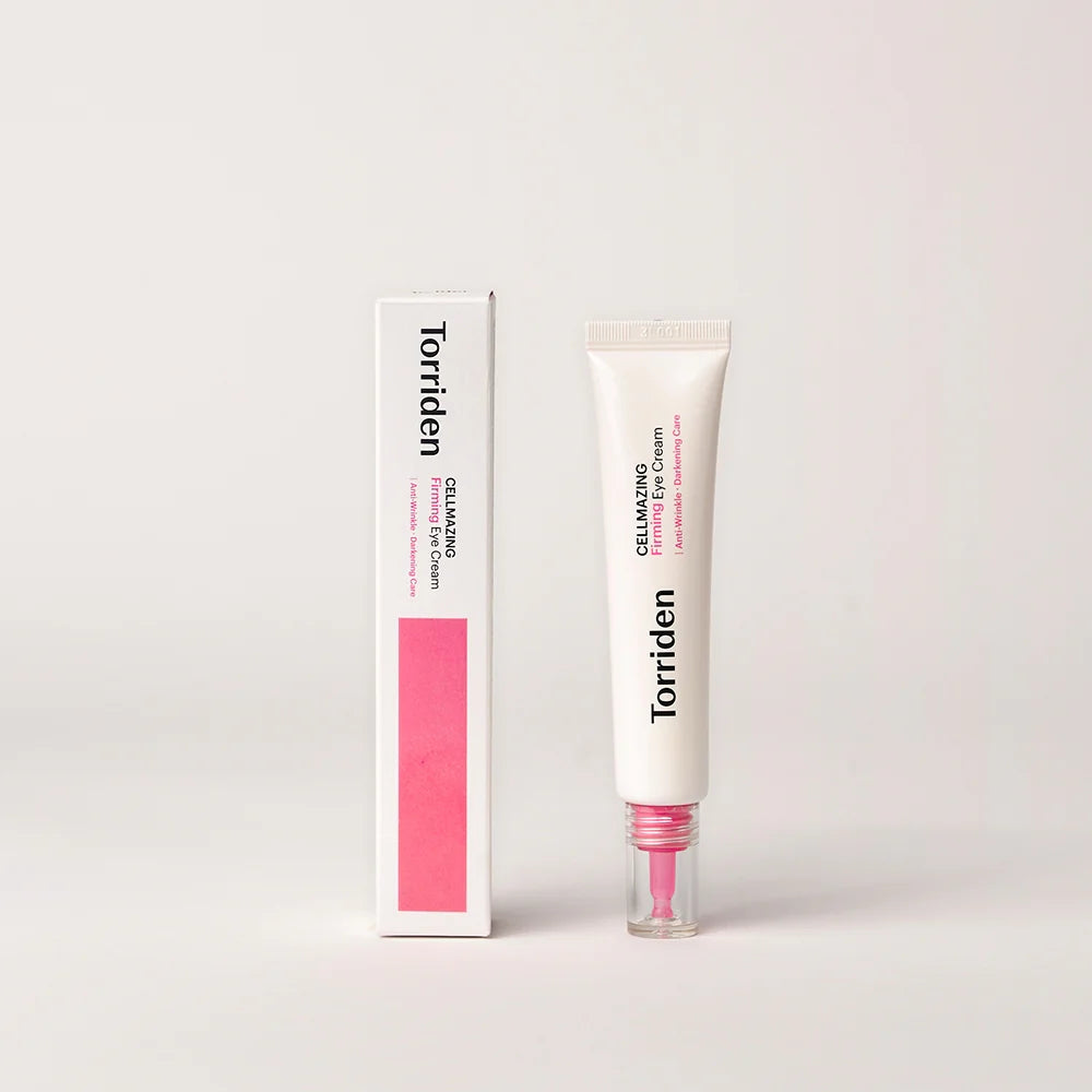 The Torriden Cellmazing Firming Eye Cream is a multi-functional eye treatment designed to address common eye-area concerns such as fine lines, loss of elasticity, dryness, and dark circles. The formula combines multi-molecular collagen, peptides, and retinol complexes to help improve skin firmness and smooth the appearance of wrinkles around the eyes.