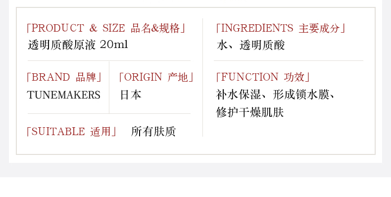 TUNEMAKERS hyaluronic acid / hyaluronic acid solution 20ml polymer water lock
