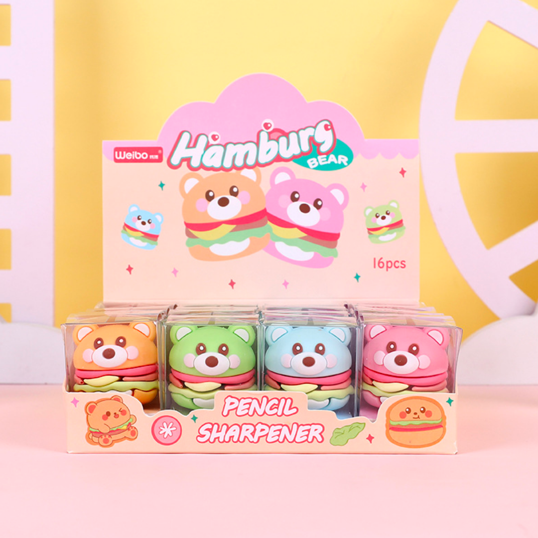 汉堡熊造型笔刨削笔器【多色混发】 Hamburger Bear Pencil Sharpener