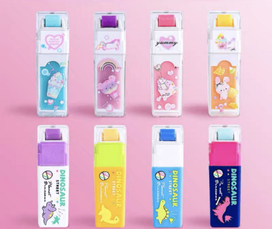 创意卡通萌宠长条滚轮橡皮擦 混發