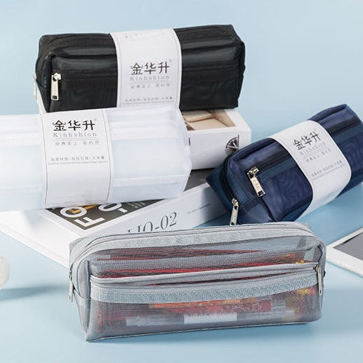 ins风双层立体透明网纱考试专用笔袋学生韩版高颜值文具铅笔袋 随机混发