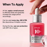 1. Apply a few drops to affected areas and gradually increase the usage period accordingly. 2. Use in the morning and at night before oil and moisturizer. 3. Can be used daily but discontinue if irritation occurs. 4. When used in the morning, be certain to wear sun protection with SPF30 or higher. |