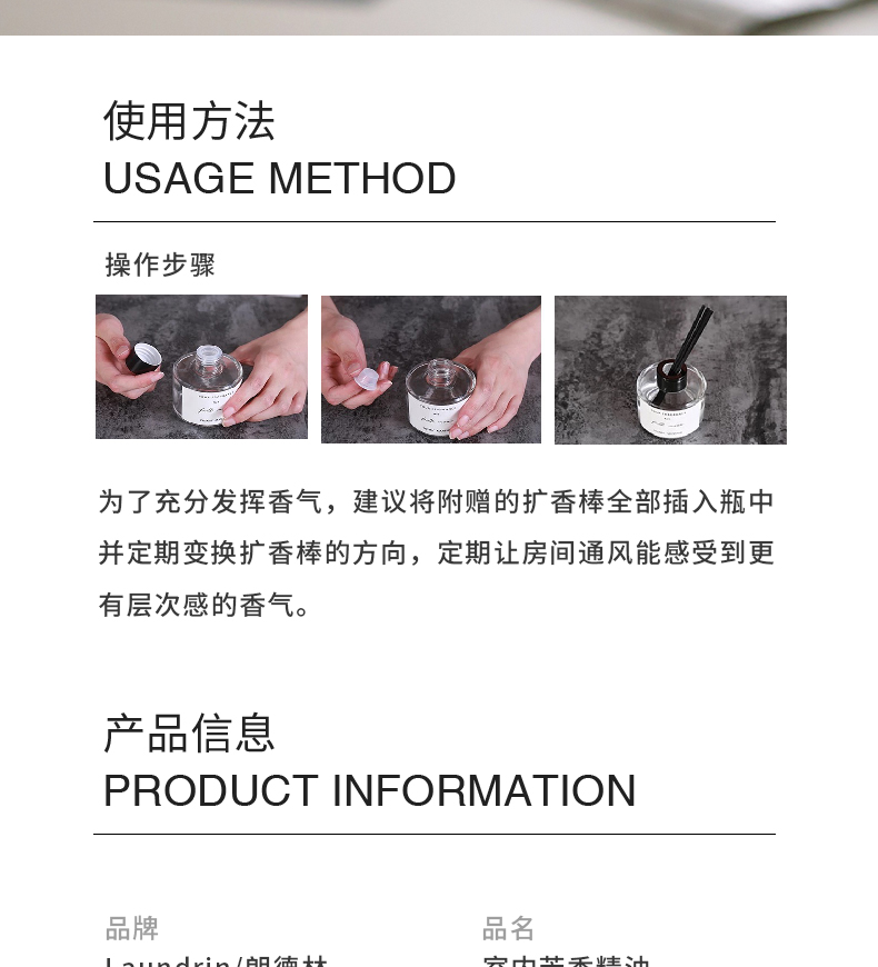 朗德林Laundrin 室内扩香精油 卧室衣柜无火香氛 80ml